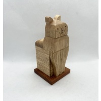 Yoh Kakuda is well-known for puzzles with cute animal themes and narrative style, well-exhibited by Silent Cat.  The story given with the puzzle is that although the puzzle’s namesake won’t respond to questions (hence its flat almost sad expression), its tail might.  The workmanship is superb, with a crucial move that’s tricky to find.  All original packing material is included.
