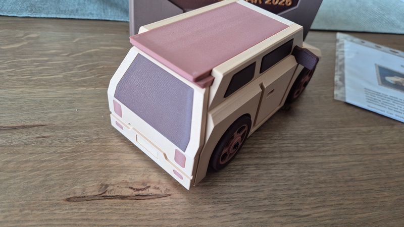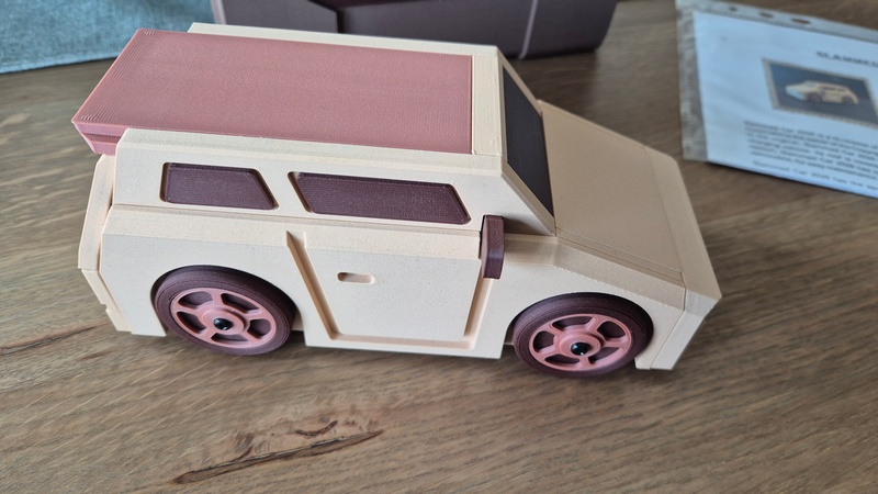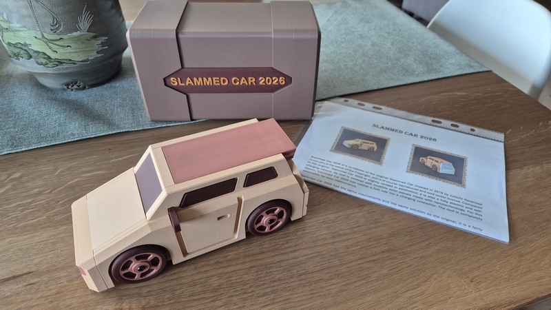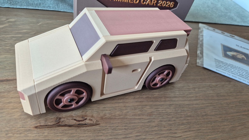 Slammed Car 2026 is printed with Wood filaments, to resemble the original.