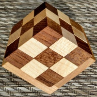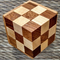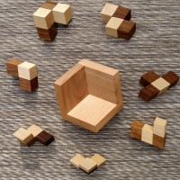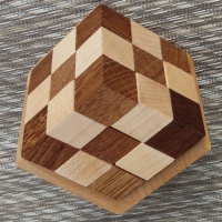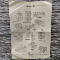 Includes an old instruction sheet with other Soma checkered figures goals from Pelikan Puzzles. However, those figures do not show rhombic pieces, so uncertain this sheet came with this puzzle.
