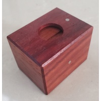 Small Box One - "Window Box" is a devious drawer tucked into a box with lots going on for its size. The large hole in the box serves as a window into the mechanism...careful observation and experimenting is necessary to reveal its secrets. I'm very happy with how this box turned out, the mechanism works flawlessly and repeatably once you know the scoop.