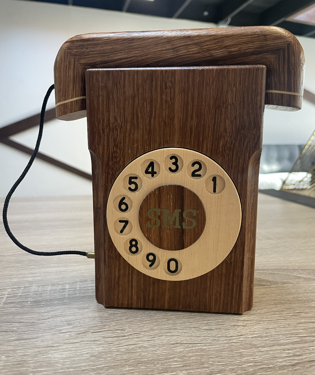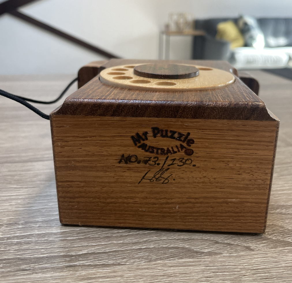 This telephone comes with a lifetime membership to Mr Puzzle’s wooden telephone network with unlimited disassembly and re-assemblies of this puzzle per month.