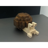 “This is the second of the puzzles designed and made by Pelikan themselves (I really hope this becomes a series). Yet again it is a “creature” and this one is absolutely adorable. The snail is constructed from Am. Walnut and Maple with dowels to produce eyes on stalks. As before the aim is to disassemble it and then put it back together. It is not a difficult puzzle but the process is wonderful with a couple of nice little Aha! moments. You end up with quite a few pieces. I love it – it is fun to play with, good for beginners (as long as they can be trusted to be gentle with the fairly complex pieces) and will look great on display. It will be another one kept in the menagerie in my living room.”