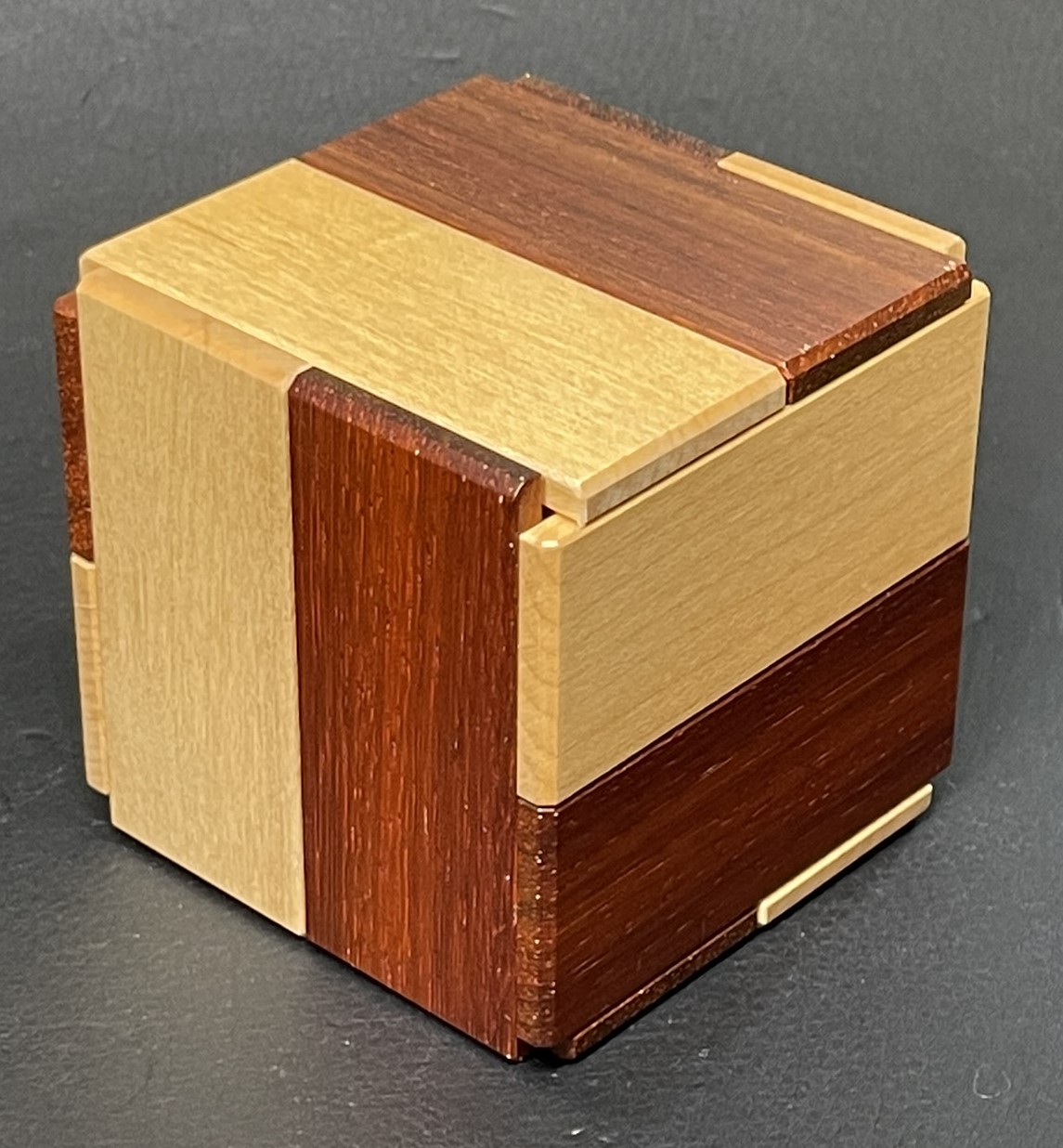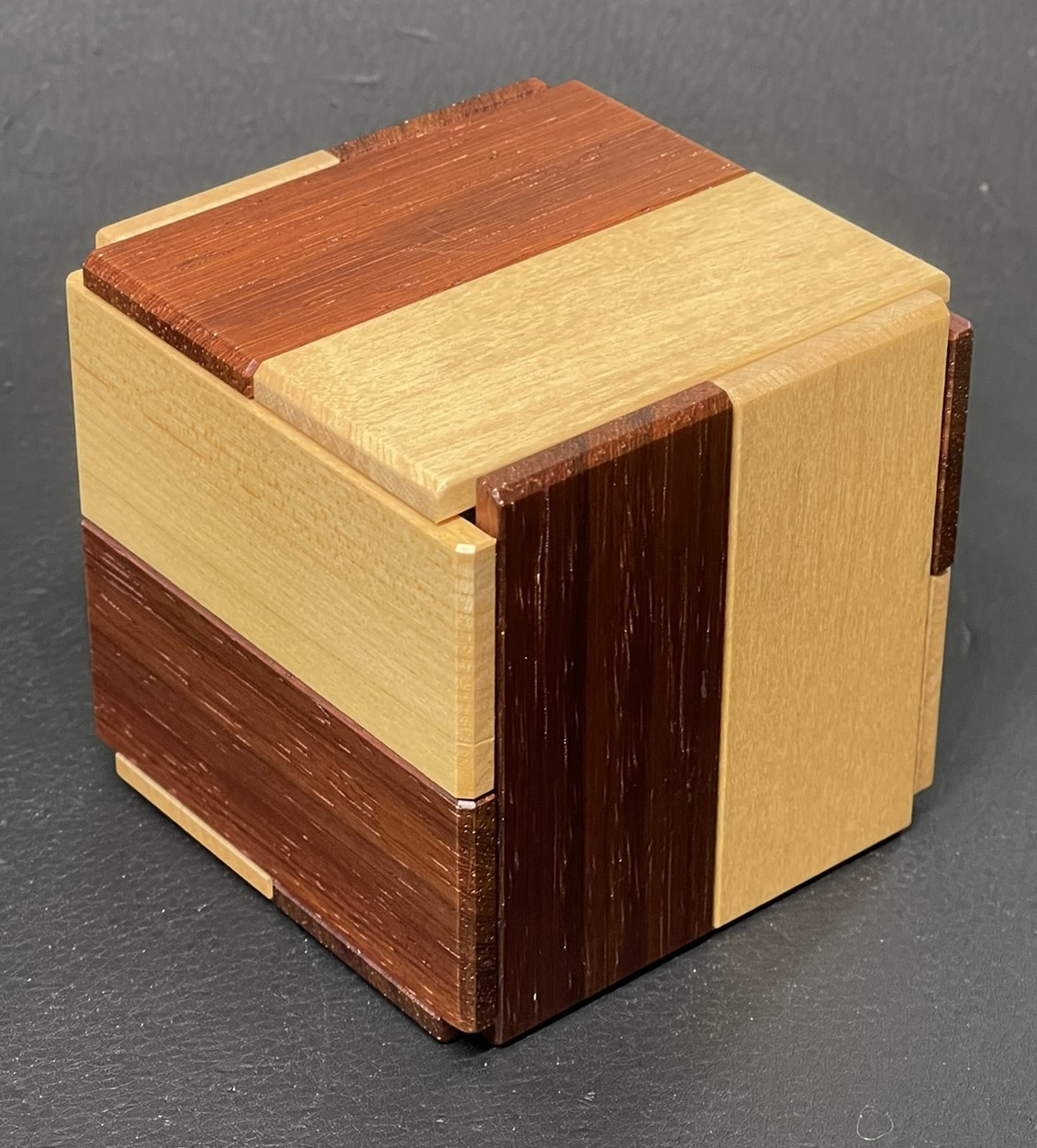 This was a Karakuri Christmas gift in 2008.  Per the Karakuri website:String BoxcraftsmanFumio TsuburaiITEMTU-14Created10/2008Size(box body)70×70×62mmSize(storage part)*****MaterialoakFacebookTwitter共有Usually, we can't open the cover. As you know, you can see two ribbons. You can pull the ribbons freely. When you pull the two ribbons in a special way, you will be able to open the cover.The puzzle is located in the United States, but I will ship worldwide.Customs forms for international ...