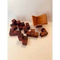 Here is how Haym described it on Facebook several days ago ‘Somama is a Soma Cube where the dimensions of some of the pieces have been stretched a little bit in various places. They still look normal and assemble into a solid cube (uniquely, unlike the original's 240), but in a curious and confusing fashion.’ And these come with a Cube Stand.”