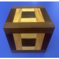 Sonneveld Cubed Burr designed by Dick Sonneveld and superbly crafted by Tom Lensch in Shedua, Prima Vera & Granadillo.