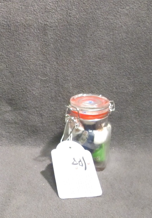 Can you fit the wooden shoes and the ball into the glass container ánd close the lid?
