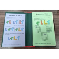 There're multiple challenges to pack the pieces into the frame. Very nice presentation in the shape of the book cover.