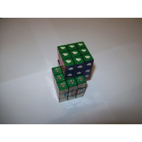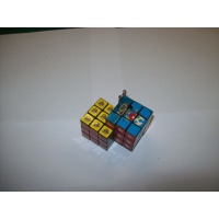 Restoring the scrambled Colored pieces of layers of two joint cubes.