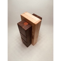 It seems hard to believe that it's been almost 20 years since I first made a small run of this clever packing puzzle design in 2006.  William has graciously allowed me to offer up another run as there were only a dozen copies made in 2006.The original metal version was William’s exchange puzzle at the IPP21 in Tokyo.This version is made using many wood varieties and includes a Stand.  The entire puzzle has been ‘triple buffed’ giving it a very nice sheen.Overall size is a little over 4...