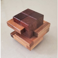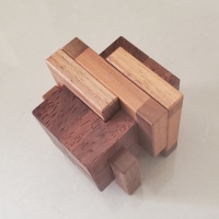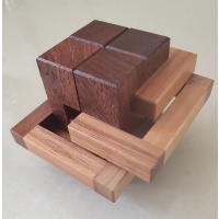 Each puzzle constructed of fine walnut and Paduak. Fit is very good! An excellent puzzle and I'm pleased with how it came out.