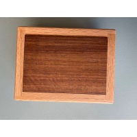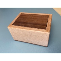 Description from the website: "Don't be afraid... With patience, focus, and perhaps a bit of luck, you can find out what's lurking within. Spirit Box challenges the puzzler to discover the tricks keeping its ghosts locked up. With this fidget-friendly box, you will be possessed to keep pushing its addictively springy top long after you've realized it's not going to be easy to understand its secrets. Spirit Box's mysteries are kept in a beautiful 3" x 4" x 2" box. Its two-toned design features European beech set off with a granadillo base and matching floating top. When you've finally found your way into the box, its mechanism will be revealed as you learn what's been haunting you."