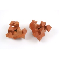 Six pieces, three each of two different types. Also and better known as 'Three Pairs Variation'. Coordinate motion is needed to (dis)assemble each half. New condition in original box. Made in Peroba Rosa by Wayne Daniel