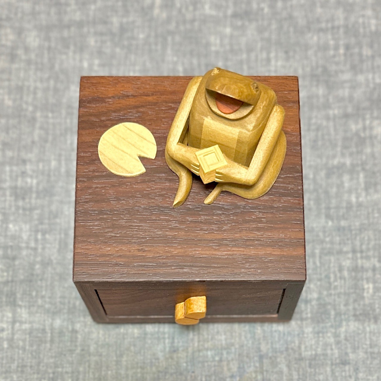 Hit Box  KCG Karakuri Box Puzzle BoxYou must hit the box to open it. This is quite simple, but it is also quitefunny. At craft fairs, many people felt that Karakuri Boxes were difficultto open. Therefore, this was designed. For a long time, the craftsmancontinued making it in secret, because, other craftsmen in our group weretrying to create special works, too. This is a new specification. The surface painting is an beautiful oil finish.The box mechanism works perfectly. opens and closes withou...