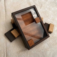 This is number 11 in the Squary Pack series created by Yavuz Demirhan. It is by far the most complex of all of them. The goal is to pack in all the 6 pieces under the acrylic lid. There is one condition, that all the white pieces need to be facing up. The box is nicely made and has a substantial size!