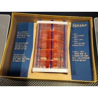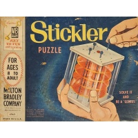 Here is another from my vintage puzzle toy collection. This is Stickler. Rotate the disc's to place the STICKS STRIGHT DOWN through all 4 discs...