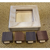 This puzzle is in excellent condition and is made of Ash, Walnut, and Sapele.
