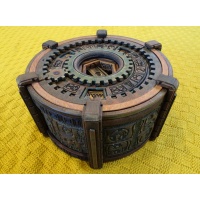 This is a limited edition puzzle box constructed of around 130 pieces of wood, metal, leather, and PLA.