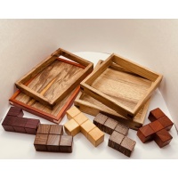 The tray for the 5x5 is made from Black Limba with Peruvian Walnut Slipfeathers. The Sleeve (removable) is Black Limba with Wenge Slipfeathers.