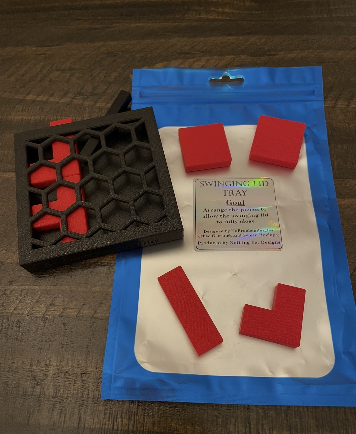 Goal: Pack all the pieces into the tray to allow the swinging lid to fully close.