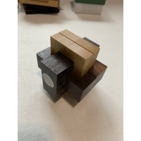 Switchboard Burr - designed by Jim Gooch and crafted by Eric Fuller. The fit on this puzzle is loose, but is somewhat necessary due to the very unique requirements of the solution. This is truly a unique design for what simply appears to be a burr and board merger. The name says it all. Eric's original posting in 2005: https://cubicdissection.com/products/switchboard-burr. There were 28 copies made.