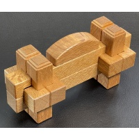 The object of the puzzle is pull down and reassemble the Sydney Harbour Bridge. This level 6 burr (that is 6 moves to remove the first piece from the puzzle) is two separate burrs that work in conjunction with each other. The puzzle has 10 pieces in total.