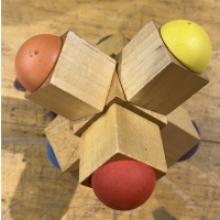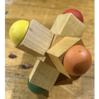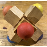 This is an interesting puzzle. The object is to extract the ball by navigating a hidden internal 3D maze. This puzzle is a discontinued Orb Factory item.