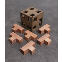 This is the Walnut PLA box/Elm wood pieces version. The goal of the puzzle is to pack the 6 pieces into the frame. There aren't that many possible configurations but it's still hard to find them. Even harder is finding the right sequence since there is only one entrance to insert the pieces. A great challenge!