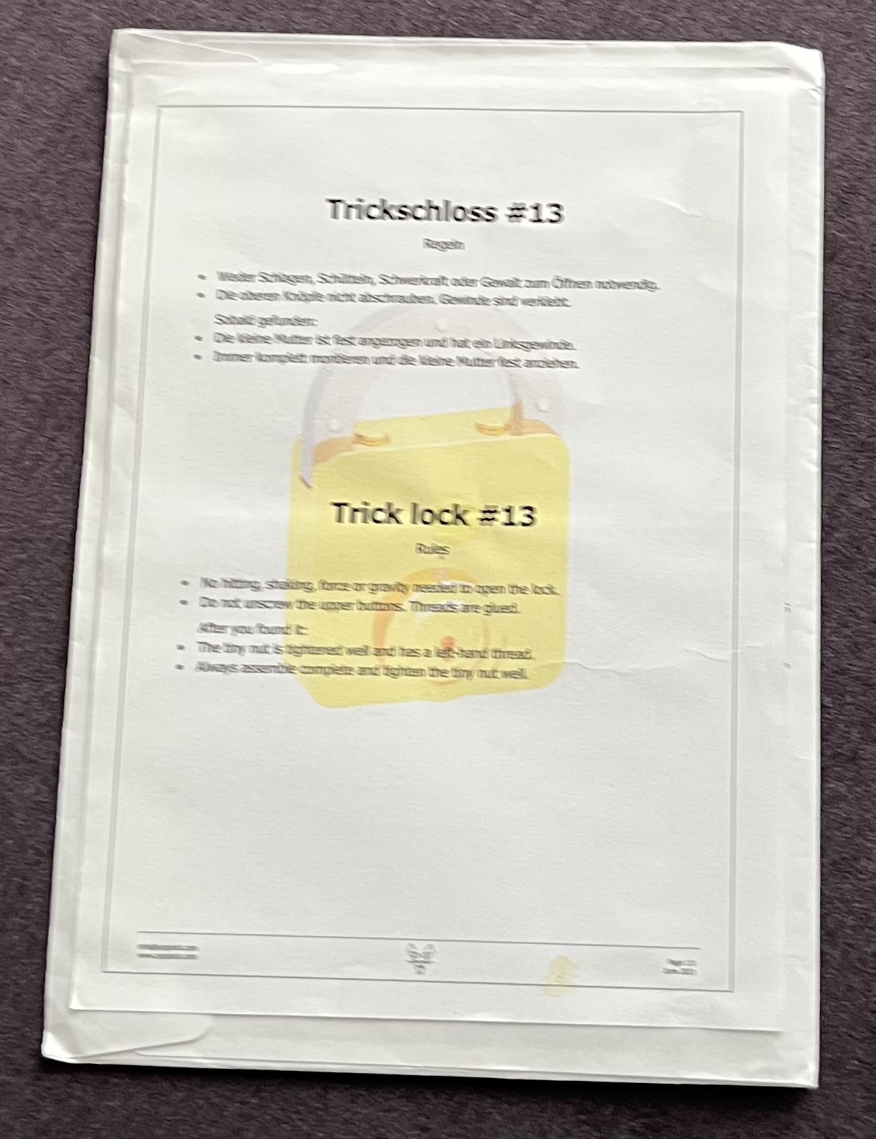 Rainer Popp T12 is a heavy, challenging masterpiece from Rainer Popp. Well-functioning puzzle. Some small scratches to the back and side (see photo).Limited edition . Buyer paid shipping and all other charges. Good luck.