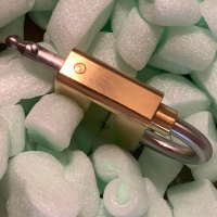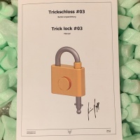 The T3 is a trick lock by Rainer Popp with 5 steps. It is made of brass and stainless steel, was manufactured in Germany in 2008 and belongs to his beautiful series of 13 trick locks that he has produced so far. Visually, there are slightly different versions of this lock, but technically they are all the same. This one is from the very first edition from 2008. Rainer Popp produced the T3 again a few years later and added the words "2nd Edition", as well as a few that have no engraving, like this one. A certificate signed by him and the instructions are included.