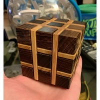 From the Cubic Dissection Website- Tabula Cube is a very interesting puzzle. The 3x3 cube format is augmented with eighteen smaller planks which connect with the cubes to make nine different shapes. The level 1.7.2 solution is tricky to disassemble and very challenging to assemble. Tabula is a lot of work to make, with 45 component pieces and very precise gluing requirements. Buyer pays shipping and it will be invoiced after auction ends. No additional fees associated. 13$ USPS Priority in US. 25$ International |