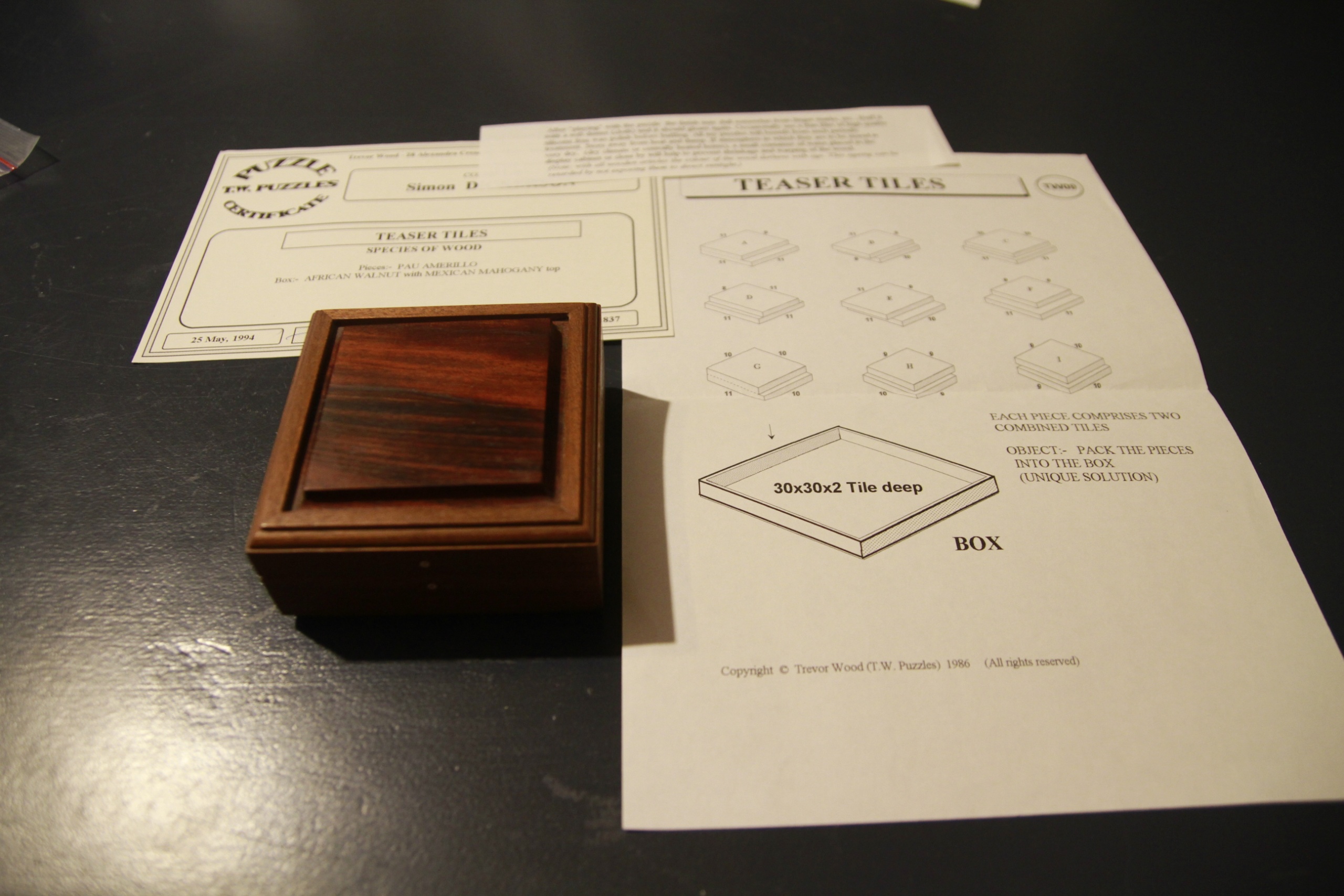A puzzle box made by Trevor Wood in 1995 from West African MahoganyWith original puzzle certificate for me, numbered 1093, 7th December 1995As you can see in the images the box works fine and is in excellent ConditionDimensions ~ 90mm x 90mm x 35mmThe book is located in the United Kingdom.Payments can be made through PayPal (Friends & Family preferred).Buyer to pay shipping, calculated after auction.