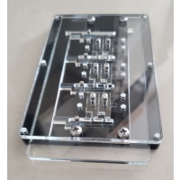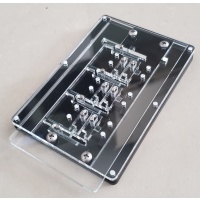 Precision cut from solid cast acrylic and painstakingly hand assembled, this puzzle has a nice weight/feel, and will not be confused with cheaper mass produced take apart items. The construction uses contrasting press fit dowel pins to align the internals, and the push pins are stainless so they do not corrode over time. 30 total copies made for sale.