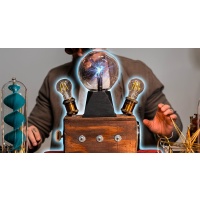 I am a HUGE sequential discovery puzzle box collector, and I have had this behind glass in 10/10 condition since 2022 but it's time for it to find a new home. everything works perfectly, I hope you enjoy this as much as I did it is one of a kind that every collector should own. comes with everything seen. 2 keys, knobs, extra light bulb, cord, Authentication paperwork from creator Andy Gilker, hints and solve sheet.