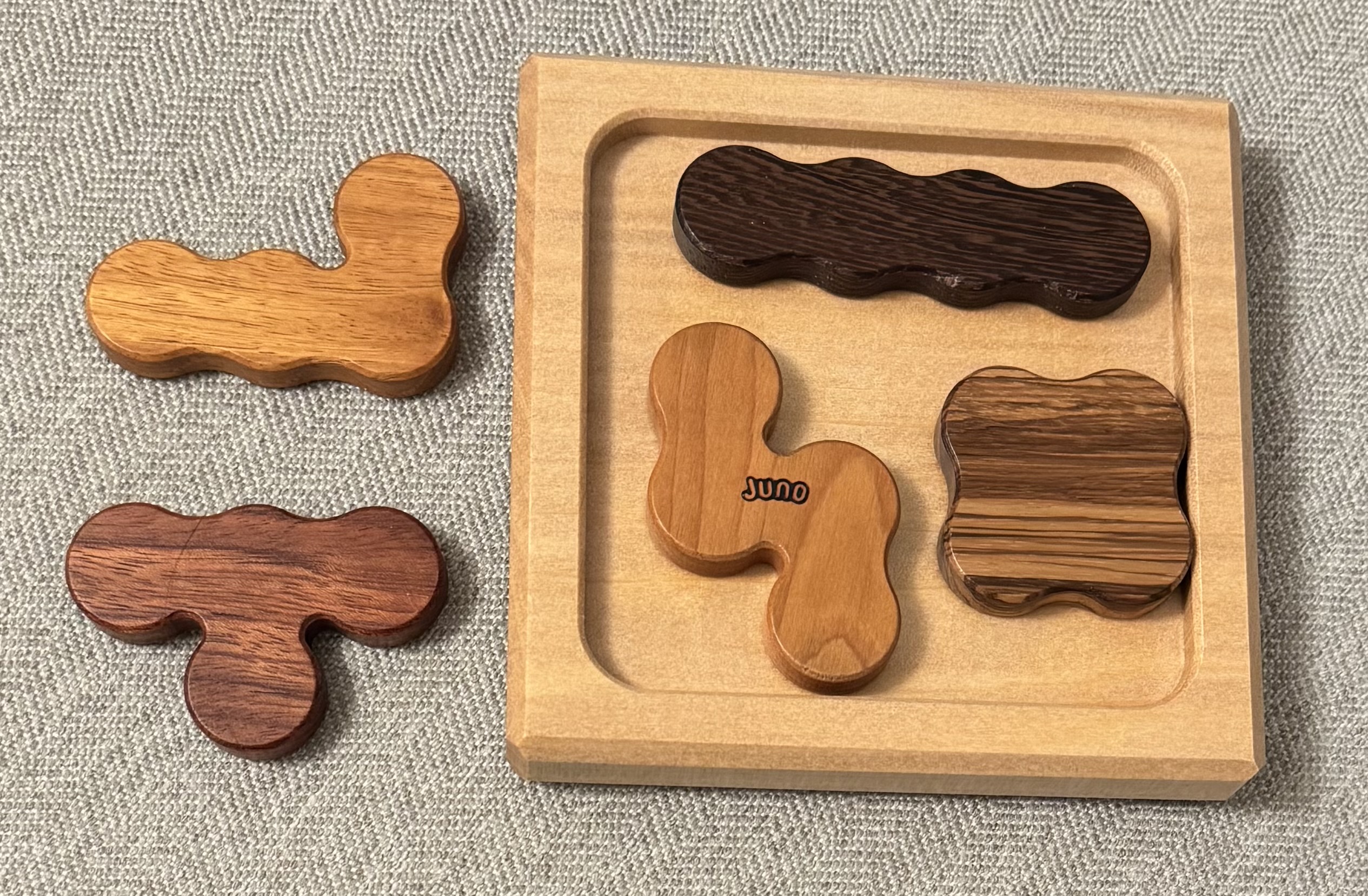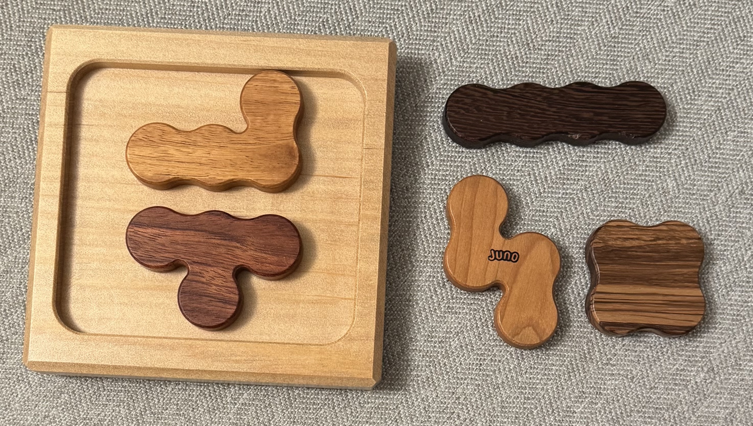 Two objects: Â Lay the pieces flat in the tray; a separate challenge on each side of the tray