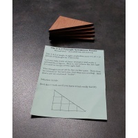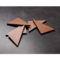 This puzzle is pure magic! The goal is to place the 5 pieces on a flat surface forming a symmetrical shape. It seems impossible given the odd number of triangles... Really cool solution. The pieces are made of laser cut wood. The puzzle comes with plastic bag and intruction sheet.