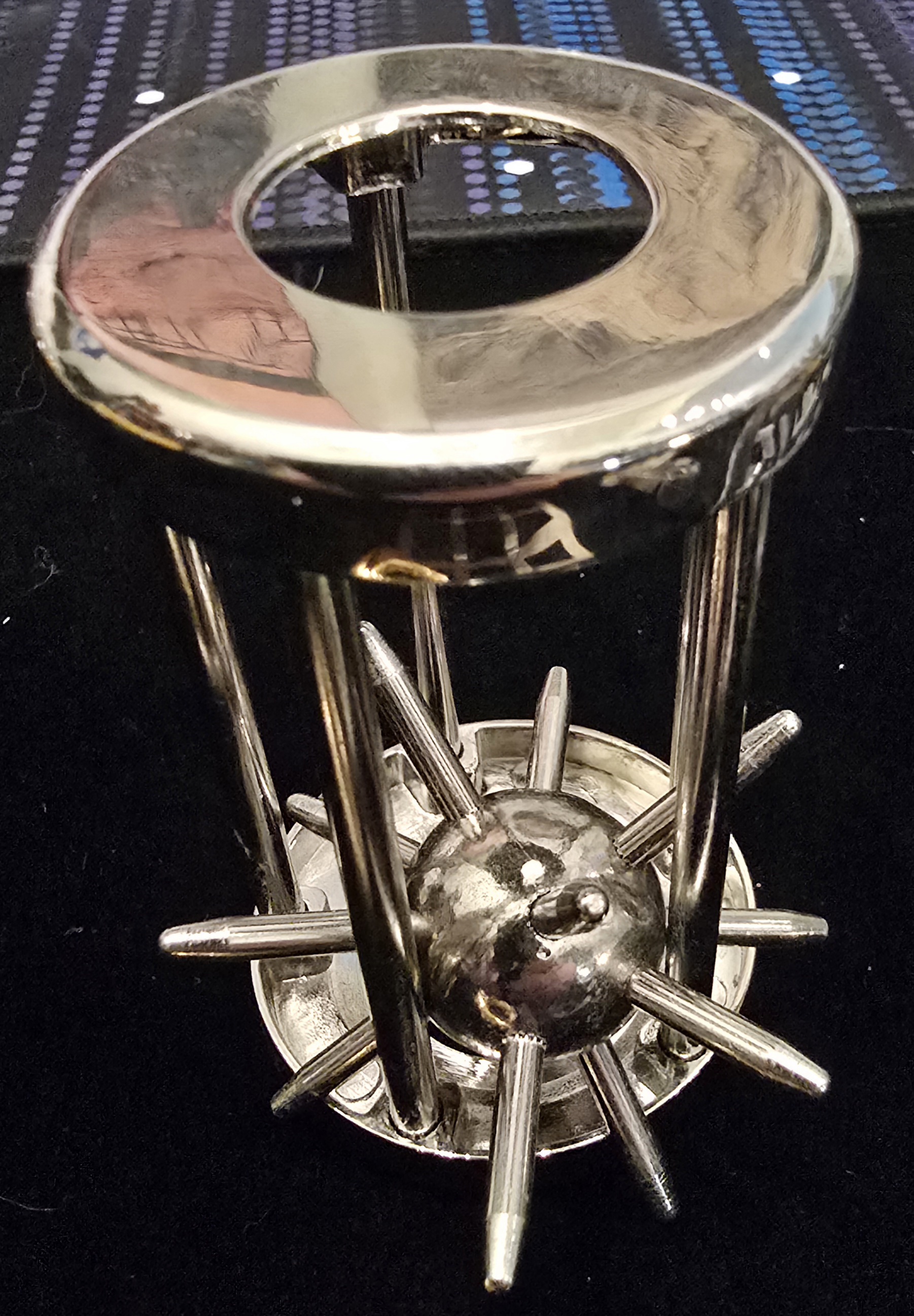 • ​The Design: A classic "Hedgehog in a Cage" variant in high-polish chrome.
