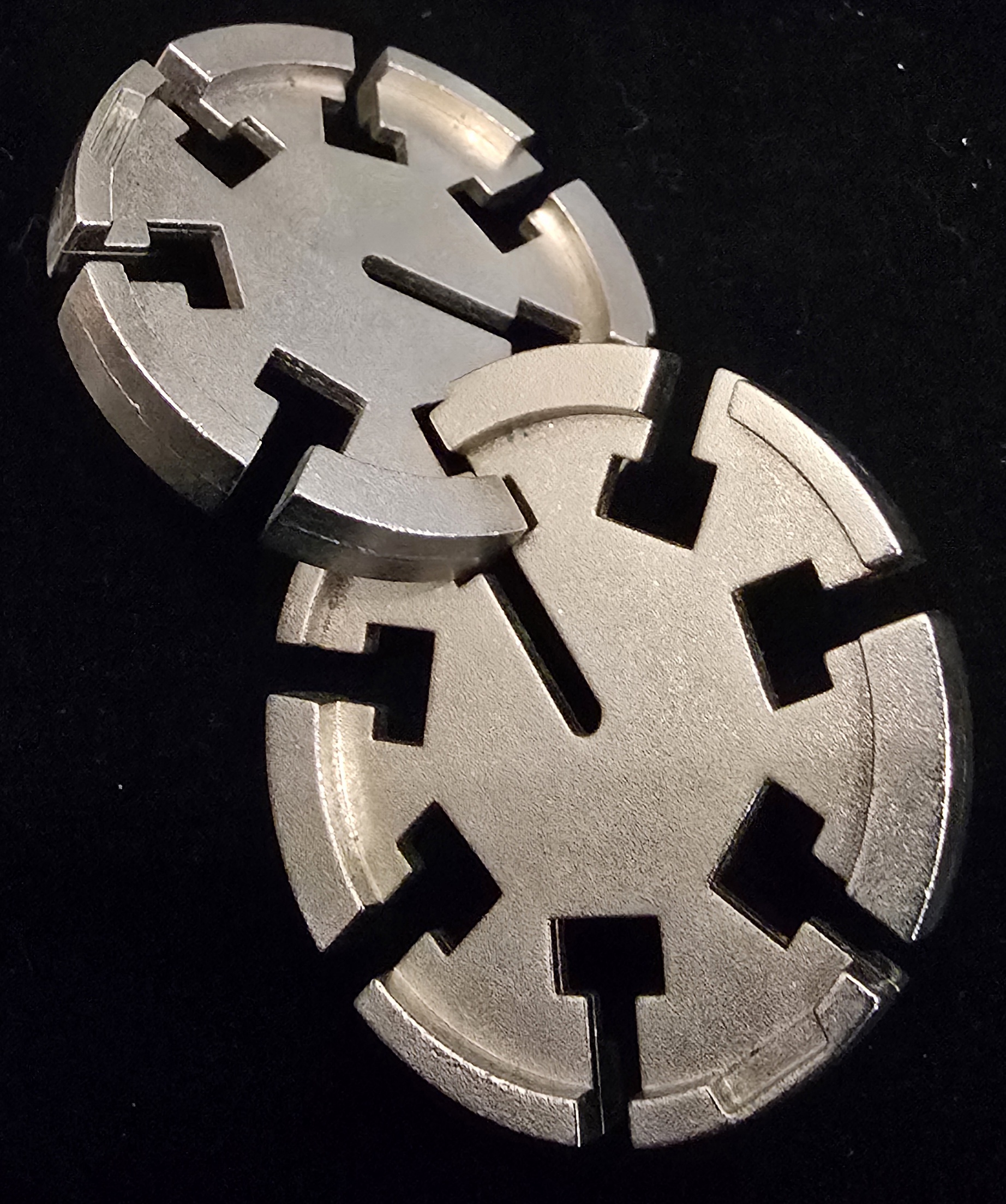 • ​The Goal: Slide and rotate the gold and silver discs through internal maze-like tracks. It requires a "feel" for the hidden paths inside.