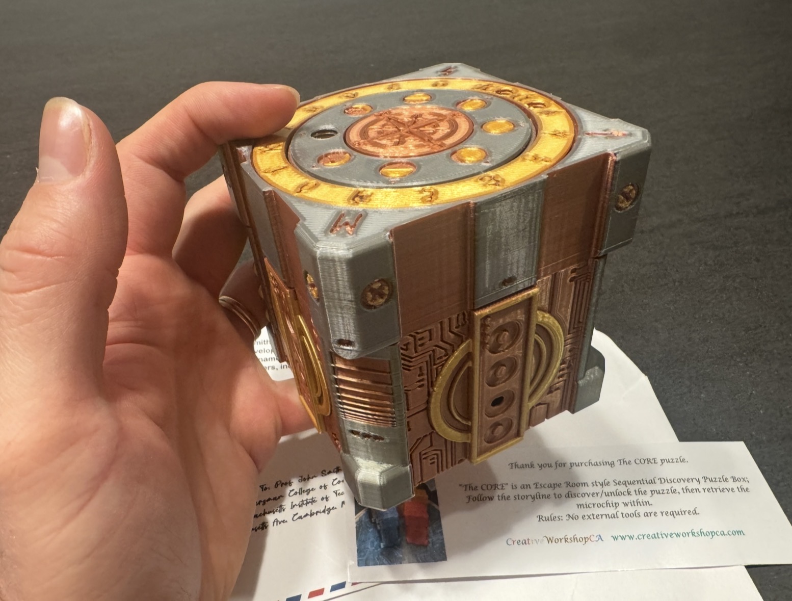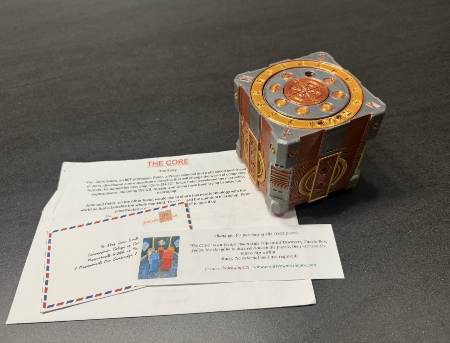 The CORE is an Escape Room style Sequential Discovery Puzzle Box.  You must follow the storyline to discover / unlock the puzzle, then retrieve the microchip within.  No external tools are required.