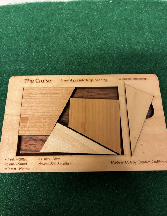 The Cruiser Puzzle designed by Stewart Coffin. Made by Creative Crafthouse. Pack all 4 pieces into tray. Excellent condition!! Shipping in U.S.A. only. Please wait to send payment until shipping cost is determined.