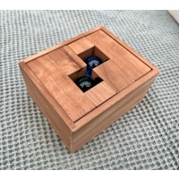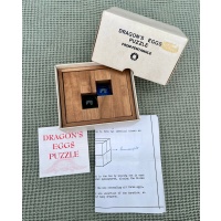 The goal is to rearrange the four wooden blocks so that all three colored balls are concealed within the rectangular solid structure. Includes original box and instructions. The puzzle is still in very good condition for its age.
