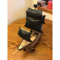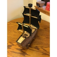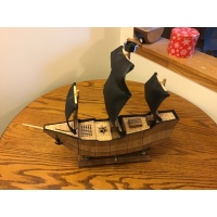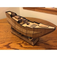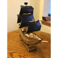 Hand-made from laser-cut wood and 3D printed interior elements, as well as wooden rods for the masts and bowsprit, and a number of magnets.