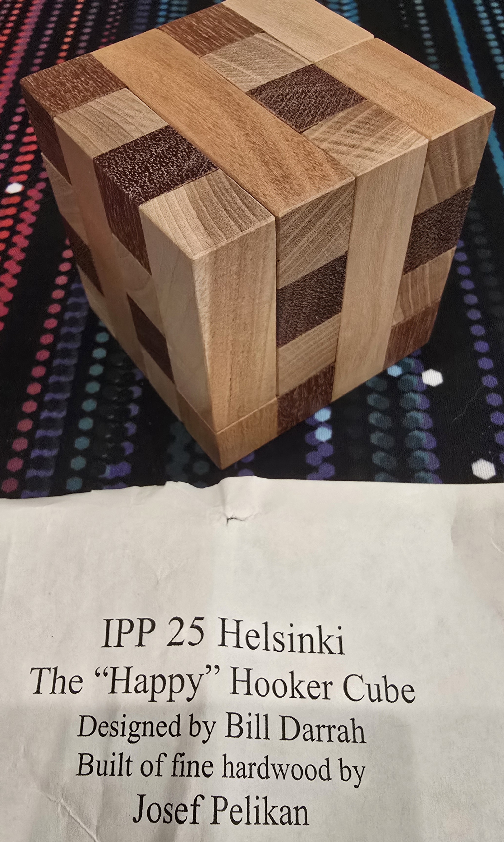 ​We are honored to present a rare opportunity to own a piece of puzzle history: The "Happy" Hooker Cube, originally exchanged at the 25th International Puzzle Party (IPP 25) in Helsinki, Finland (2005). This specific copy was part of the personal, private collection of legendary designer Bill Darrah, recovered and cataloged after his passing.