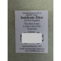 The Intricate Dice puzzle was the IPP21 exchange puzzle of Irina Novichkova at IPP21 in Tokyo, 2001.