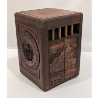 This is the metal infused limited edition of the Lost Vault by Jesse Born. This puzzle looks and feels amazing, and is a really fun sequential discovery puzzle box of moderate difficulty. Puzzle has been solved and reset a few times and is in good condition. There are 2 small chips on the side panel of the ship (see picture).