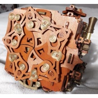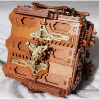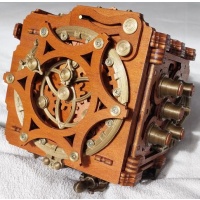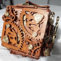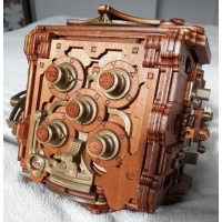 Amazing steampunk inspired 15 movement puzzle box (10 physical 5 cryptic). Seamlessly integrated mechanisms that provide a good challenge and a piece that looks great as a piece of art.