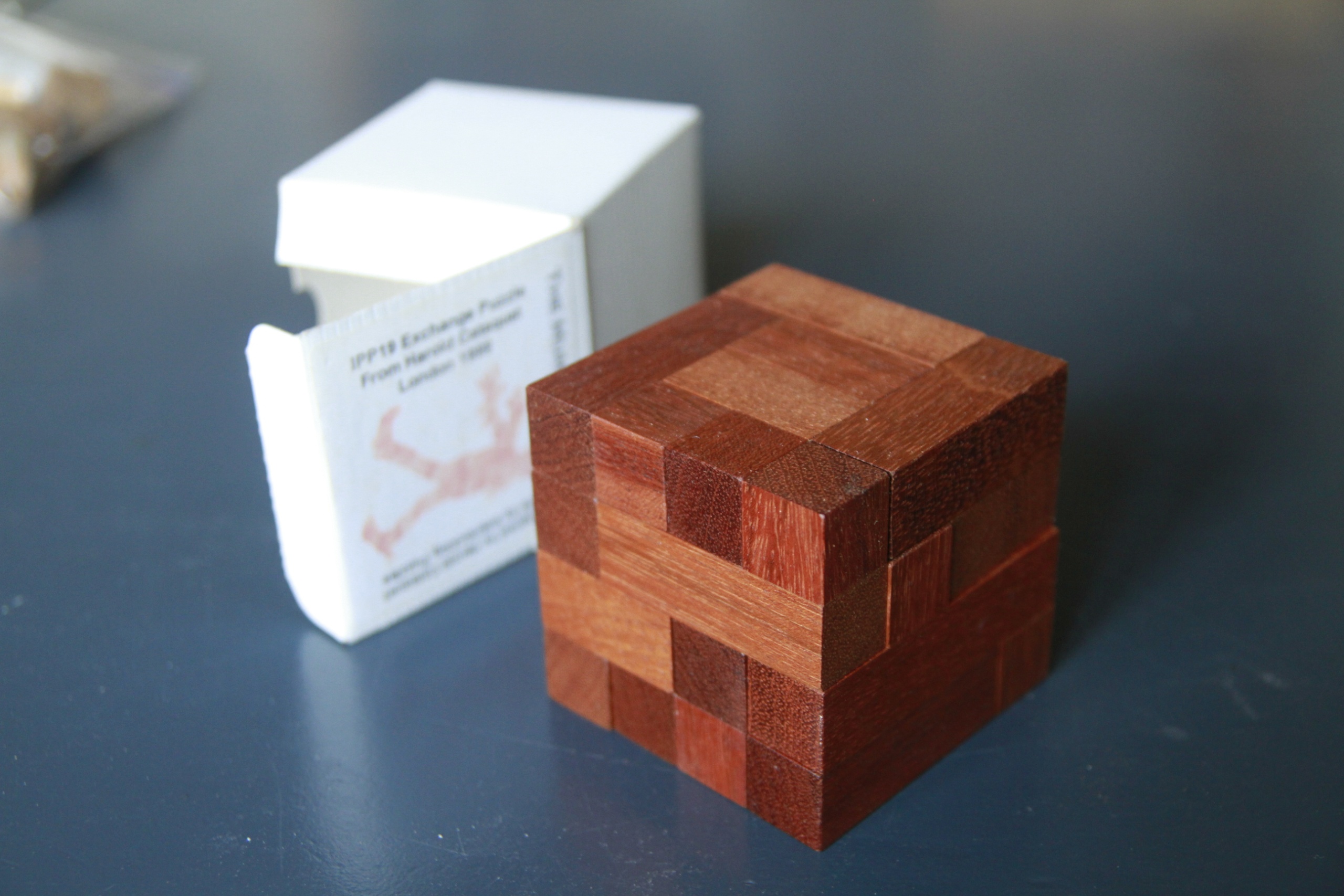 A puzzle box made by Trevor Wood in 1995 from West African MahoganyWith original puzzle certificate for me, numbered 1093, 7th December 1995As you can see in the images the box works fine and is in excellent ConditionDimensions ~ 90mm x 90mm x 35mmThe book is located in the United Kingdom.Payments can be made through PayPal (Friends & Family preferred).Buyer to pay shipping, calculated after auction.