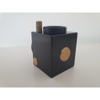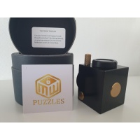 The puzzle is made of various materials (aluminium, brass, plastic) and is in good condition. The knob has been a bit stiff from the start, but this does not at all affect the solve. There have been a few copies that had an issue with the first step, but this one fully works as intended (but this does not mean that it is easily figured out :-) ).
