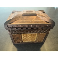I promise to package the puzzle like a collector.You can combine the puzzles I currently have for sale to reduce shipping costs.The rich, dark grains of Peruvian walnut meet the warm tones of black limba in this beautiful puzzle box. Beyond its striking exterior lies a hidden mechanism waiting to be discovered through a series of intuitive and satisfying steps. Test your wits with this medium difficulty puzzle. Pinhead measures 6 in x 5 in x 2 in.https://www.dedwoodcrafts.com/products/pinhead