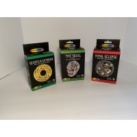 Total Eclipse is designed by the world famous puzzle designer, Oskar van Deventer. It is a unique looking puzzle that reminded us of a solar eclipse. It consists of a spherical cage with two rings inside. The object is to get the two rings out.