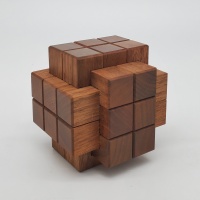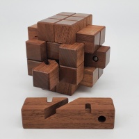• description: A unique 18-piece interlocking assembly puzzle designed in the early 1960s and crafted from Walnut in 2010 by Jerry McFarland, The Slider diverges from typical burr geometry. Instead of following standard burr structure, it uses slanted cuts for coordinated motion, with the key piece secured by a pin and a magnet—resulting in a fun yet mechanically intriguing design.